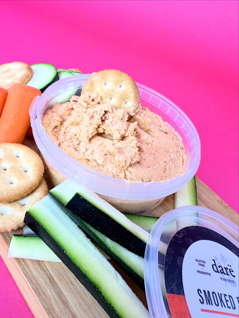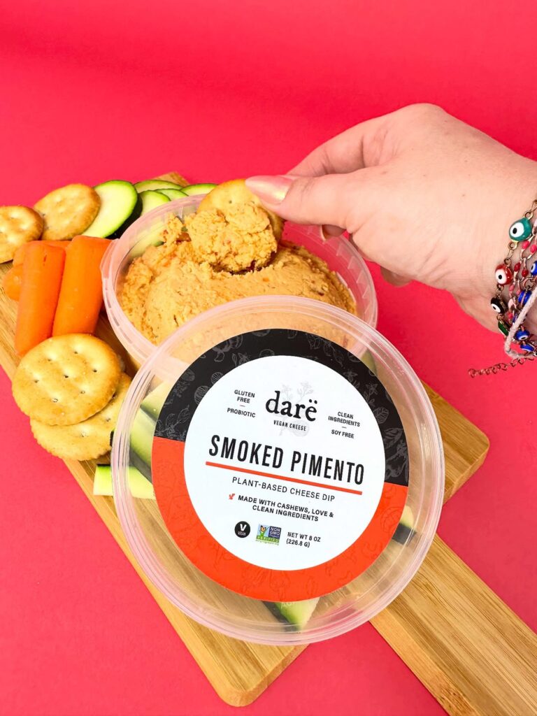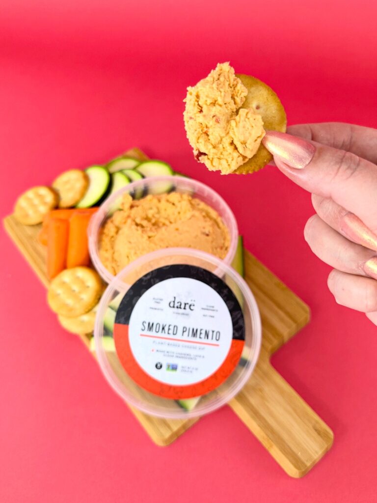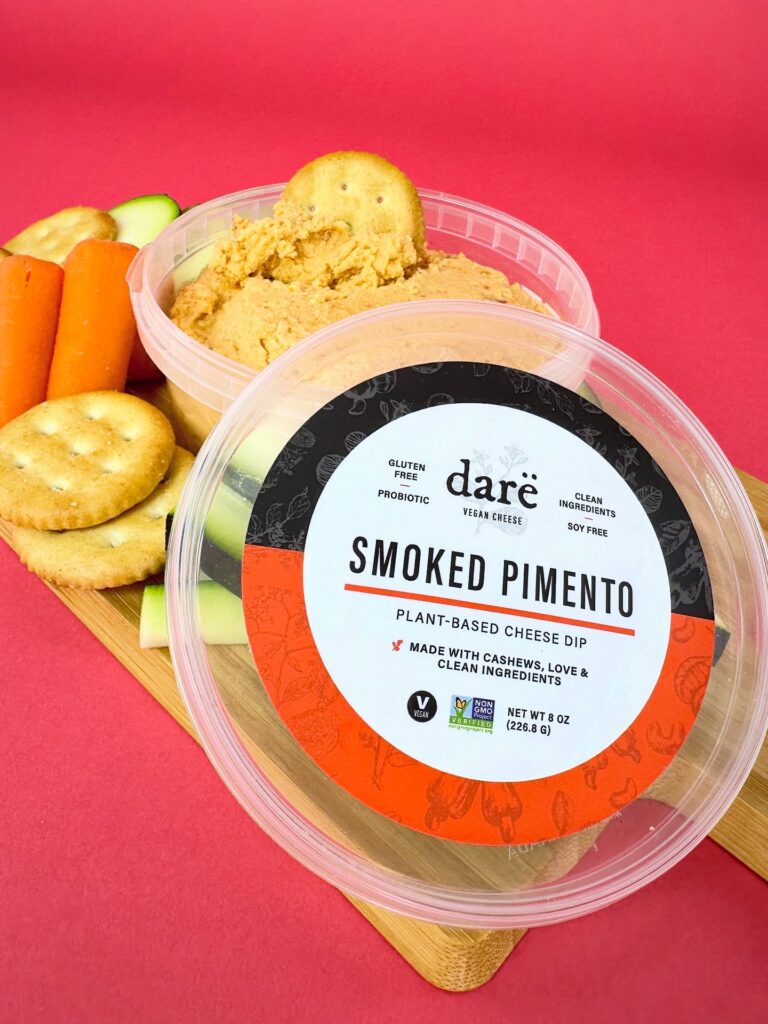 You can find Darë Vegan Cheese (and desserts) at So-Cal Whole Foods Markets, in Vallejo at Anchor Pantry, and online for home delivery at darevegancheese.com. I am eyeing the Holiday Vegan Cheeseboard Box for upcoming festive gatherings, as it not only includes the famed Darë Vegan Smoked Pimento Cheese Dip but various cheese wedges, crackers, jam, and olives, perfect for hosting and sampling- just provide the board and utensils!