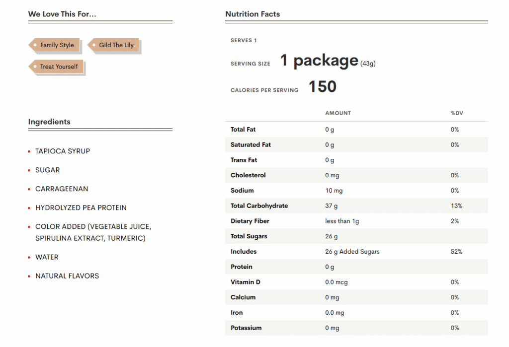 By ingredients, these are a solid comparison to the GoodMallow Vegan Peeps that launched last week. The TJ’s Peeps are not labeled plant-based or vegan, but the ingredient list 2 is vegan-friendly if you are not concerned about their sugar or natural flavor sources (see bottom of post for full list of ingredients). Both GoodMallow and Trader Joe’s use a unique gelatin replacement- pea protein, and use the same natural sources for color. The taste comparison is a perfect match for the traditional Peeps I remember: crispy, sugary-coated, fluffy, and sweet.